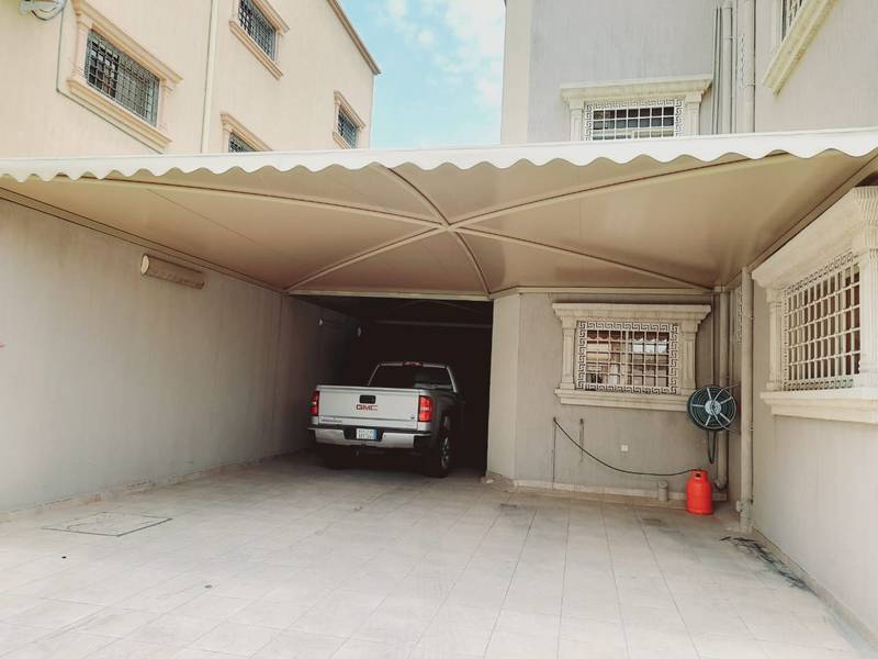 مظلات سيارات: تحمي المركبات من أشعة الشمس والأمطار وتقلل من تلف الطلاء.