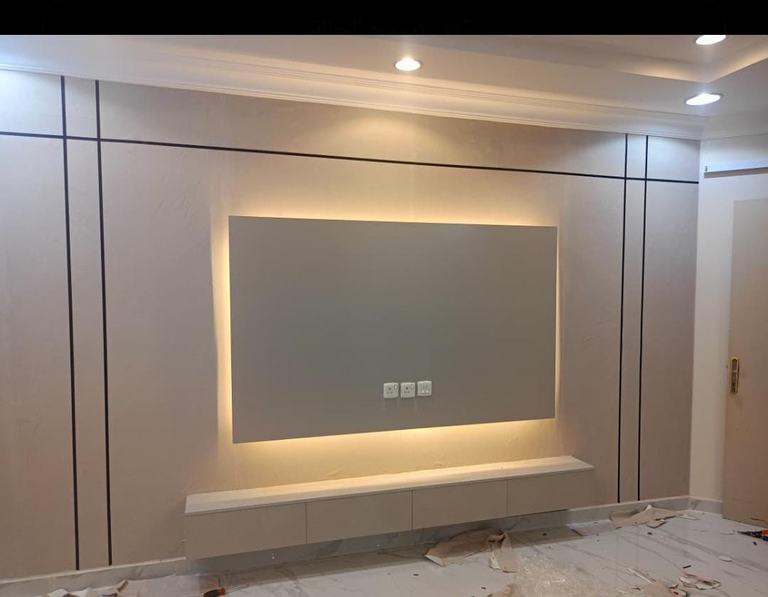 تركيب خلفيات شاشه مع تلبيس الشيبورد او بديل الحجر او بديل الخشب