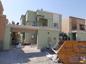 ترميم الواجهات الخارجية: تنظيف، دهان، تركيب حجر أو عزل حراري.